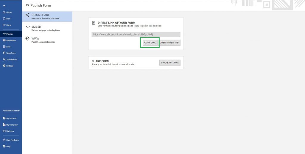Step 1) Get your form’s direct link from AbcSubmit Form Builder.