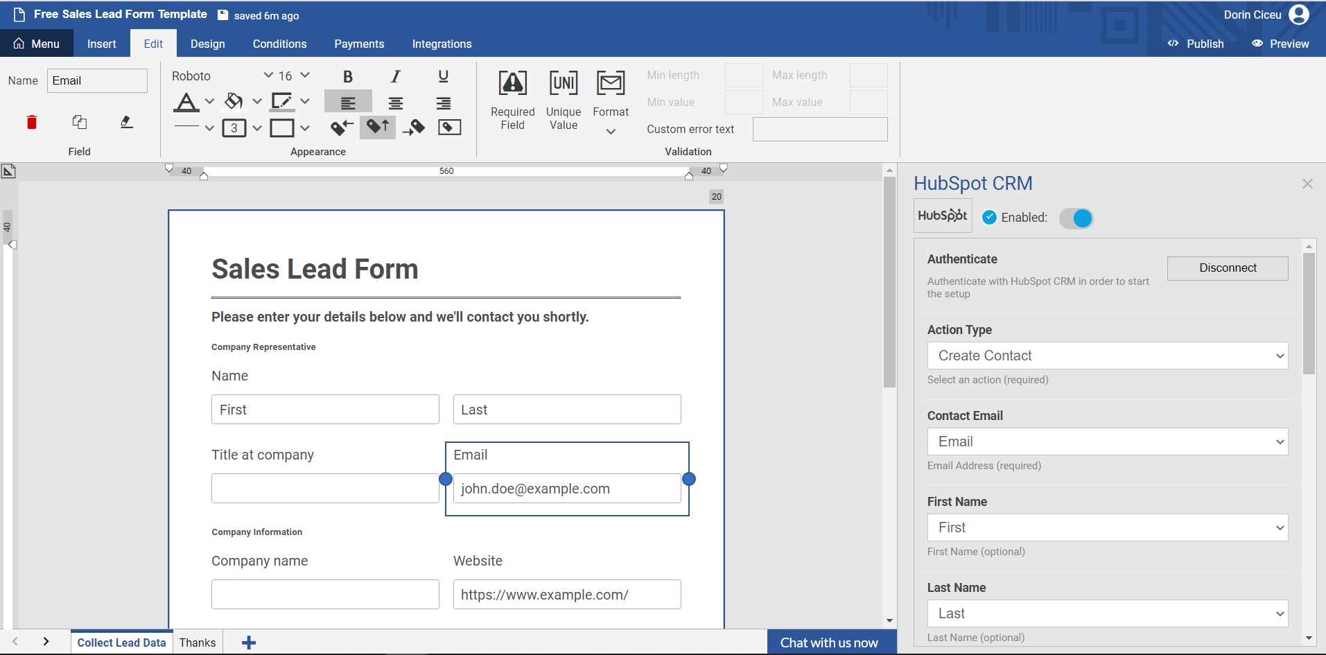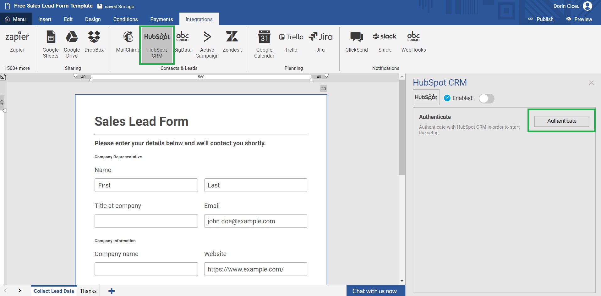 The HubSpot integration on AbcSubmit connects seamlessly to your HubSpot CRM account and automatically syncs your business and customer contacts.