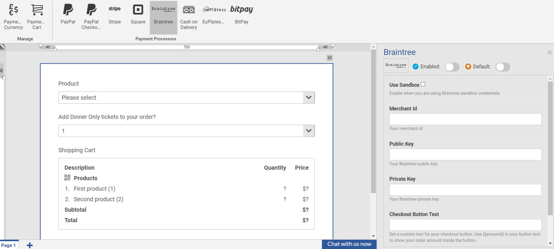 Note: Enable Use Sandbox option if you are using your Braintree sandbox credentials.